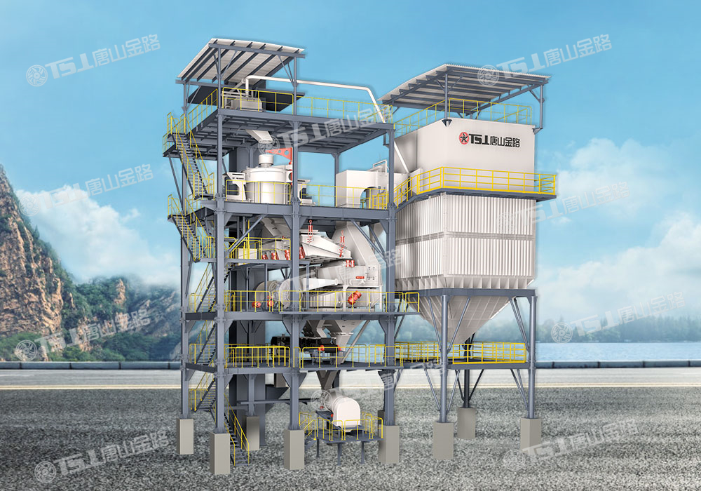 唐山金路V9干式制砂樓主要用于高品質(zhì)機制砂的生產(chǎn)中,由五孔碾磨制砂機、空氣篩、粗細(xì)粉分離機、加濕拌合機等設(shè)備組成。
